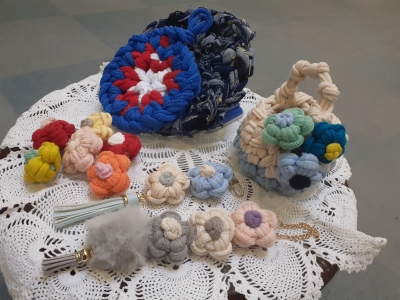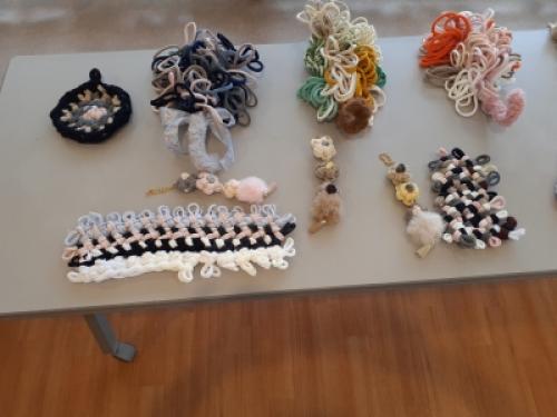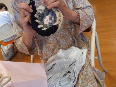 先日、在宅高齢者等介護者リフレッシュ事業で、靴下の“はぎれ”を使った”ゆび編み体験”を行いました。